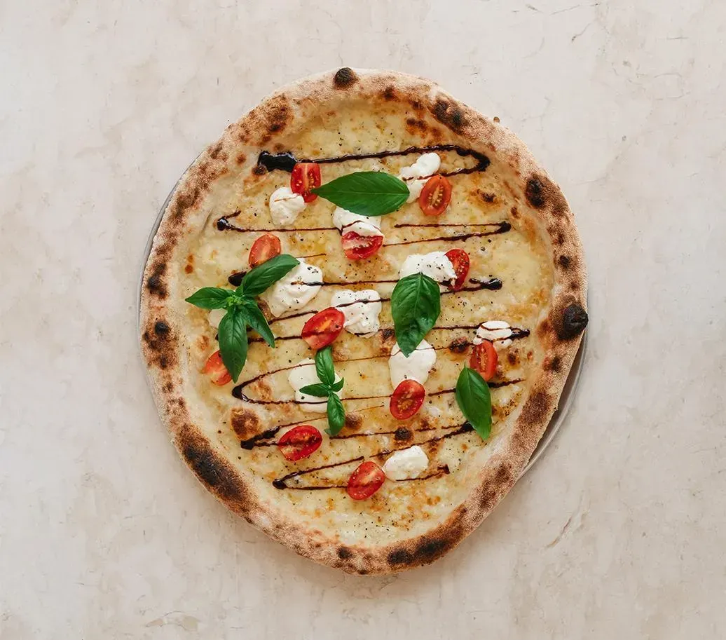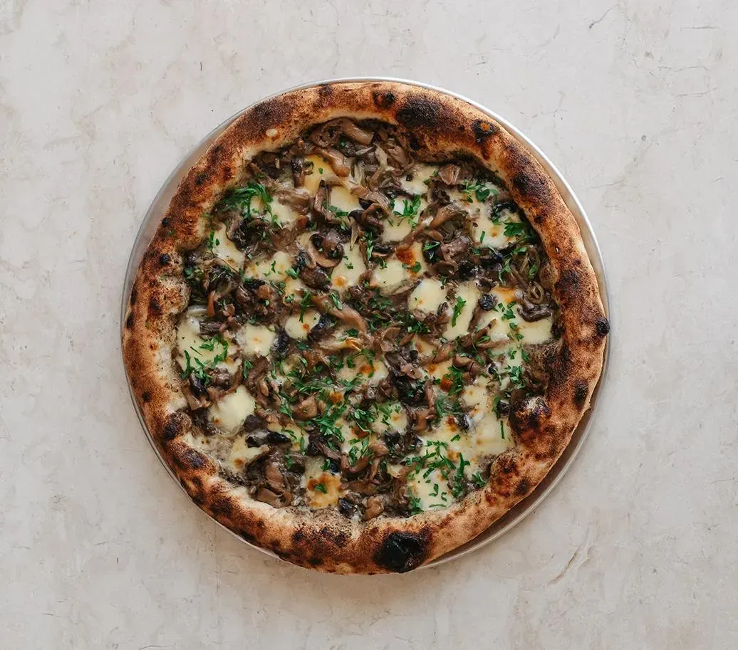 Truffle cream, Sauteed mushrooms, Roasted onions, Smoked scamorza, Mozzarella