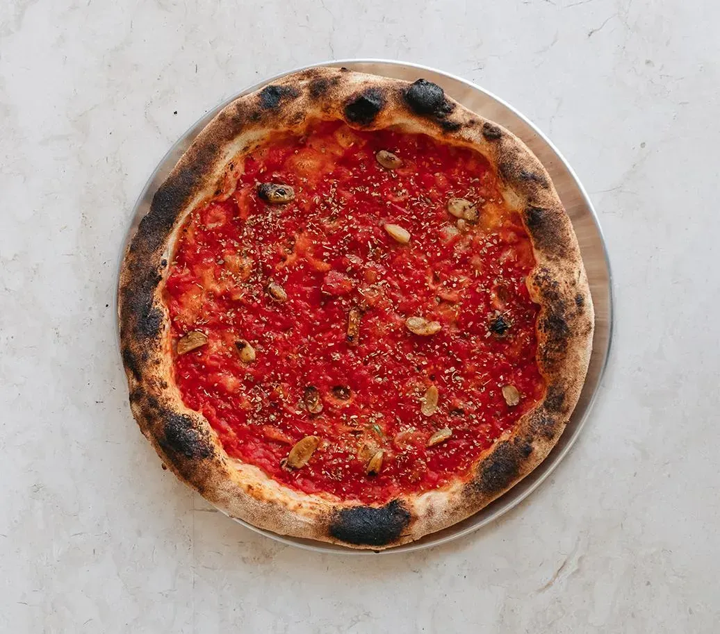 Tomato sauce, Confit garlic, Oregano, Extra virgin garlic oil